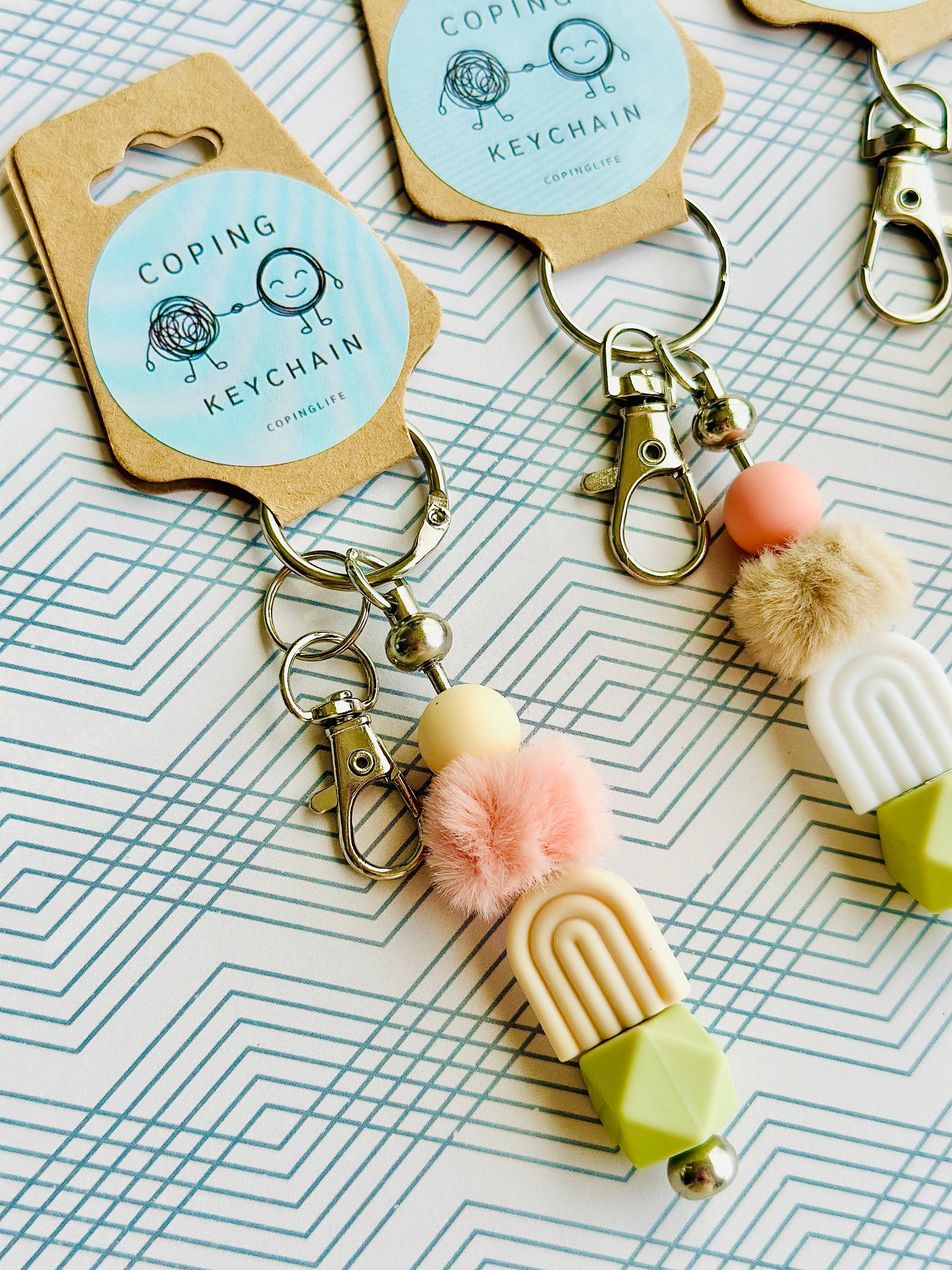 🤲 Touch – With a combination of wooden, silicone, pom-pom, and shaped beads, these keychains provide a variety of textures—smooth, soft, firm, squishy—so you can fidget and focus on the different sensations.